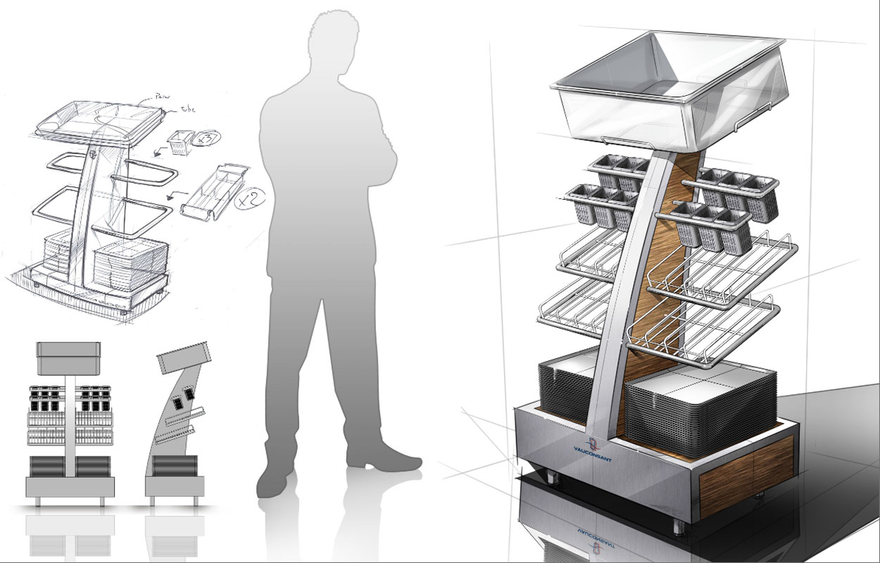 Vauconsant a confié à Evok la mission de redessiner un des produits les plus complexes de leur gamme de mobilier pour la restauration collective : le distributeur de couverts.